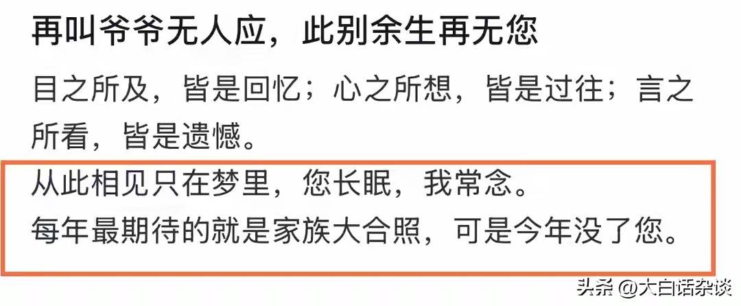 从老人生前的照片来看,很朴实,只是脸稍微有些浮肿,对孙子应该是百般疼爱,所以爷爷去世后非常难过。