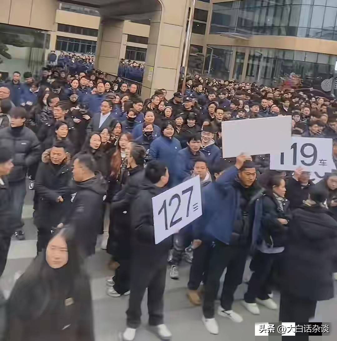 第二张图应该是意尔康厂区,这里聚集了不少员工,看他们举的牌子应该是在这里等车,右边牌子为119车,最左边为127车,也就是说这次出殡葬礼上光员工就有好几千人。