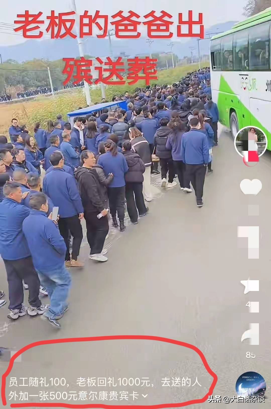 评论区有网友透露,意尔康温溪总厂大概有8千人的样子,如果全都去了,每个人返1000现金,就是800万,还不说500块的意尔康贵宾卡,整个葬礼还不得花费上千万?